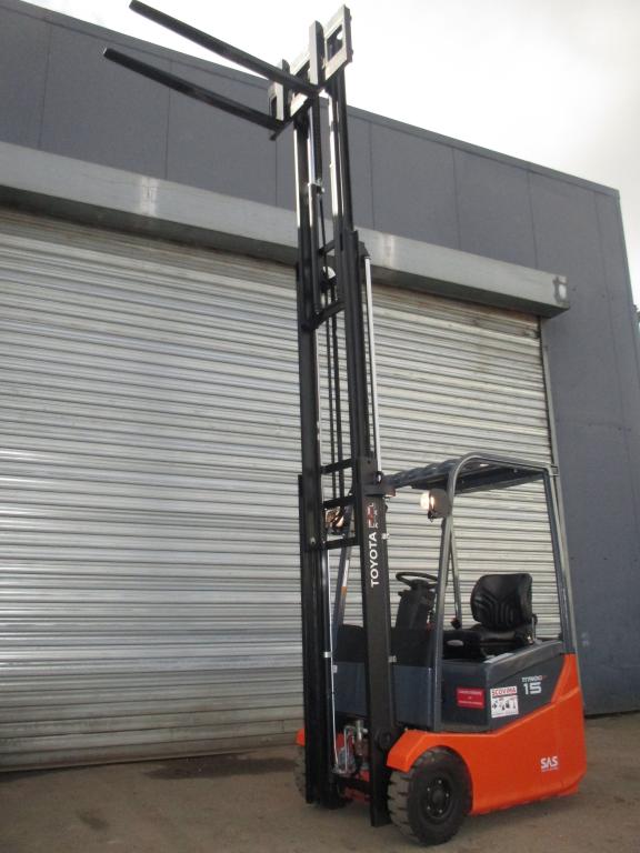 | Descriptif : | CHARIOT ÉLÉVATEUR ELECTRIQUE TOYOTA TRAIGO 7FBEST15 A 3 ROUES AVEC MAT TRIPLEX 4.3M LEVÉE LIBRE TOTAL +TDL . 4 PNEUS PPS |